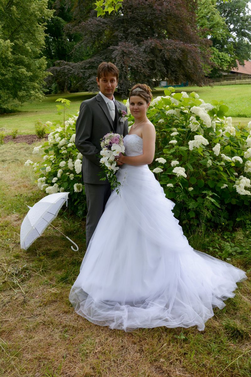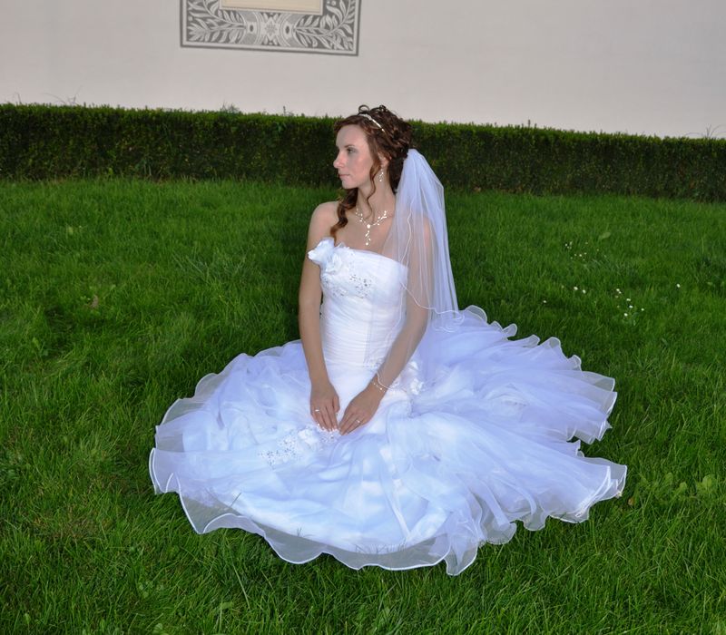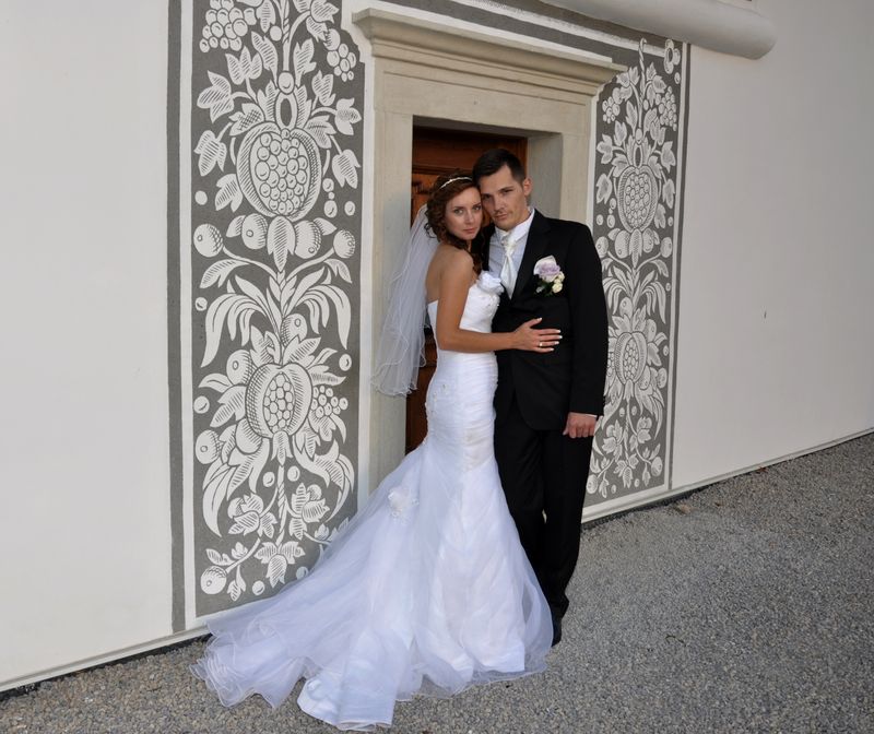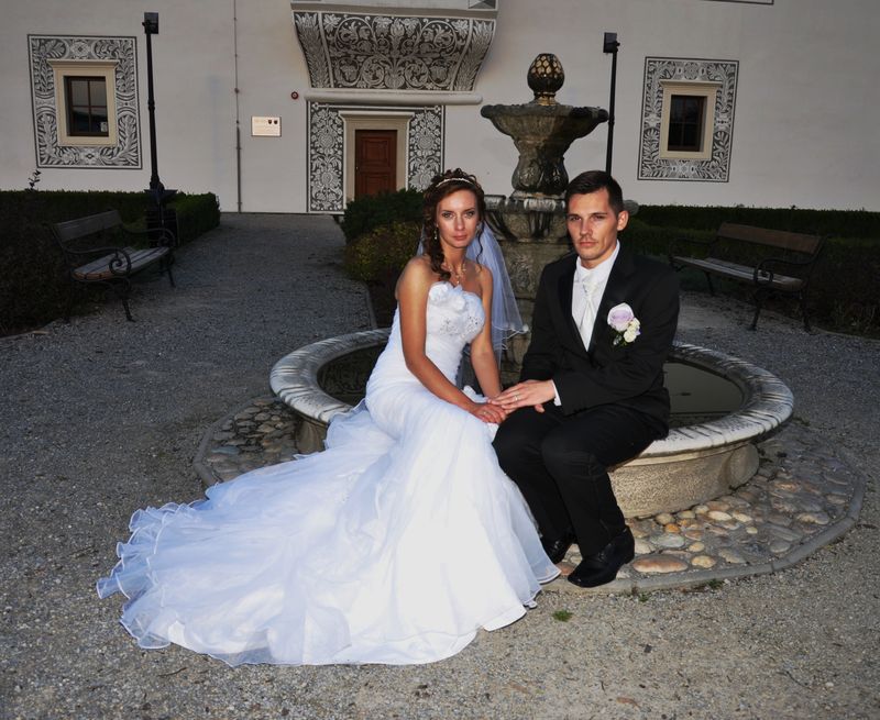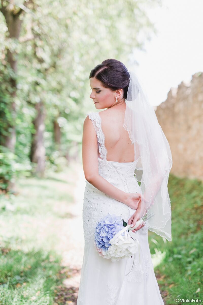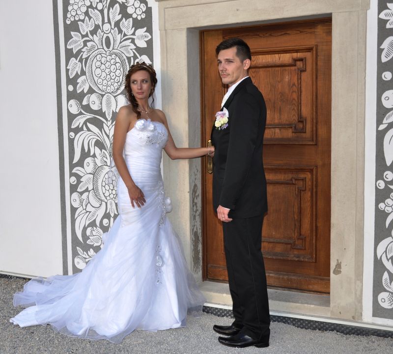 S velkým zpožděním, avšak jak jsem slíbila, Vám konečně zasílám nějaké foto ze svatby. Musím říct, že šaty posloužily výborně, moc se líbily a já v nich k mému údivu vydržela do dvou do rána. Moc děkuji, jsem ráda, že jsem si vybrala Váš salon. Šaty teď visí ve skříni a zatím nemám sílu se s nimi loučit....