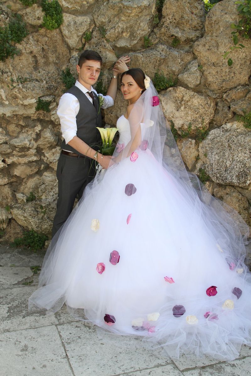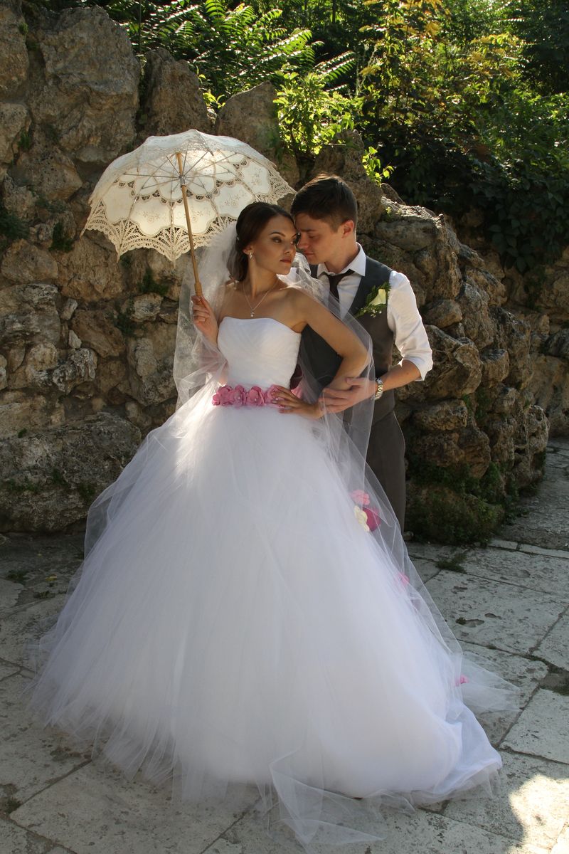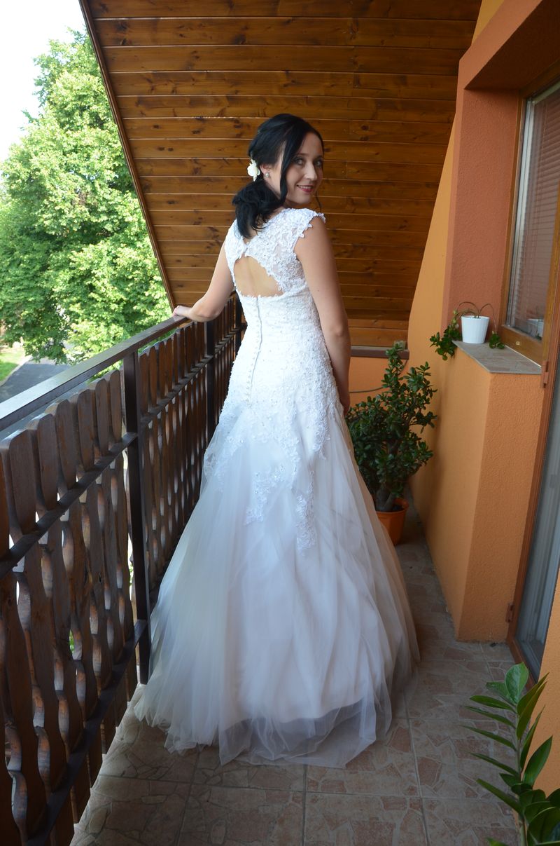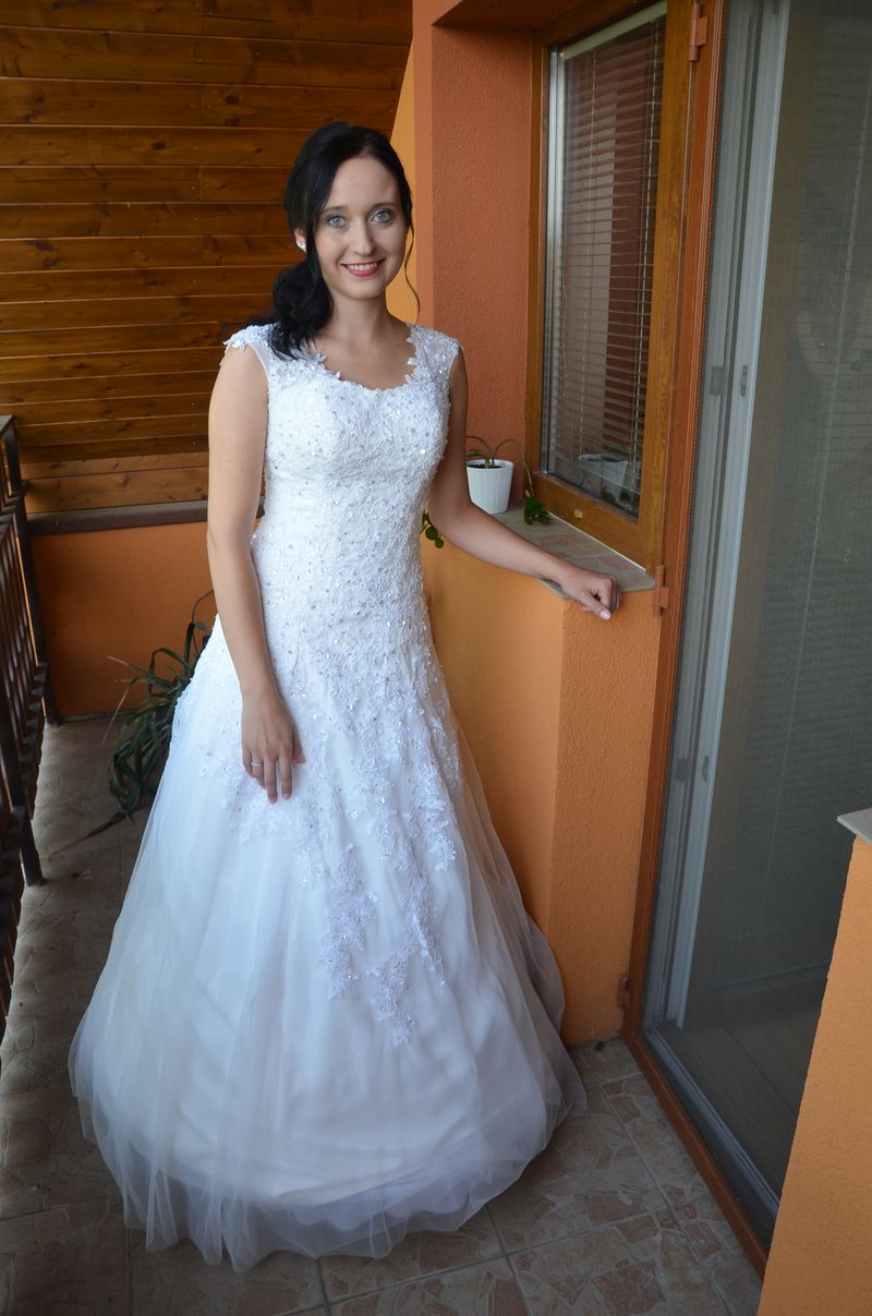 Tyto svatební šaty jsme zasílali poštou, neměli jsme tedy možnost si nevěstu přeměřit a pozvat na finální zkoušku. Přesto, spokojenost naší klientky posuďte sami :)